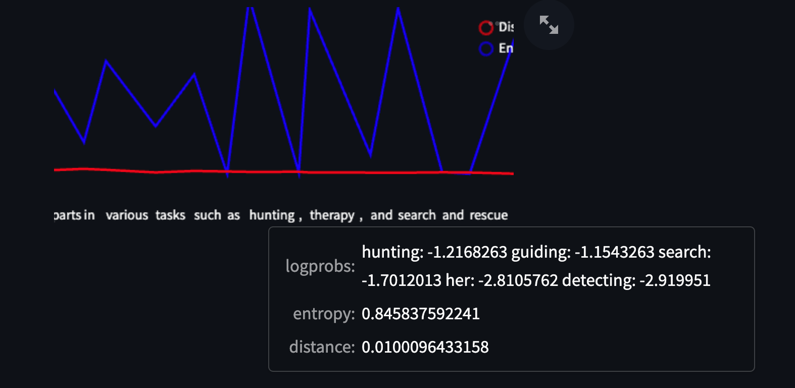However, we ran into some interesting cases where entropy was high simply because the model was choosing between several very similar tokens. It would’ve had practically no impact on the overall response if the model chose one token or another, and the straight entropy calculation didn’t capture this nuance. We realized then that we needed a second measure to not only assess how uncertain the model was about which token to pick, but how “spread out” the potential responses could’ve been had those other tokens been picked.
